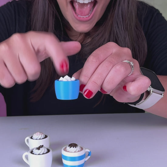Răsfață-ți simțurile cu Ciocolata Caldă... fără calorii, dar cu multă relaxare! Acest fidget adorabil, în formă de cană cu frișcă și topping de ciocolată, este perfect pentru momentele în care vrei să te deconectezi. Realizat prin imprimare 3D, este o combinație delicioasă de design creativ și funcționalitate antistres.